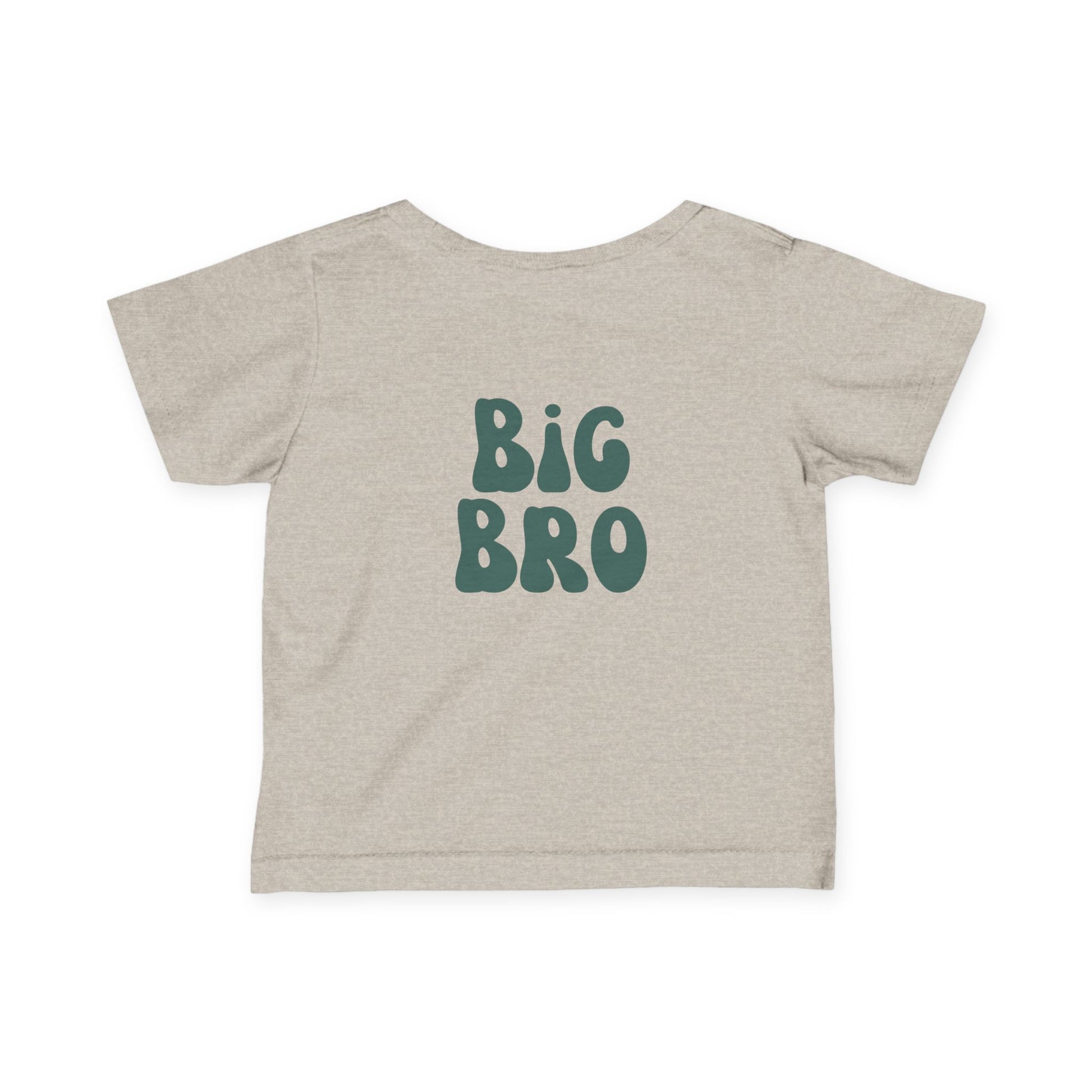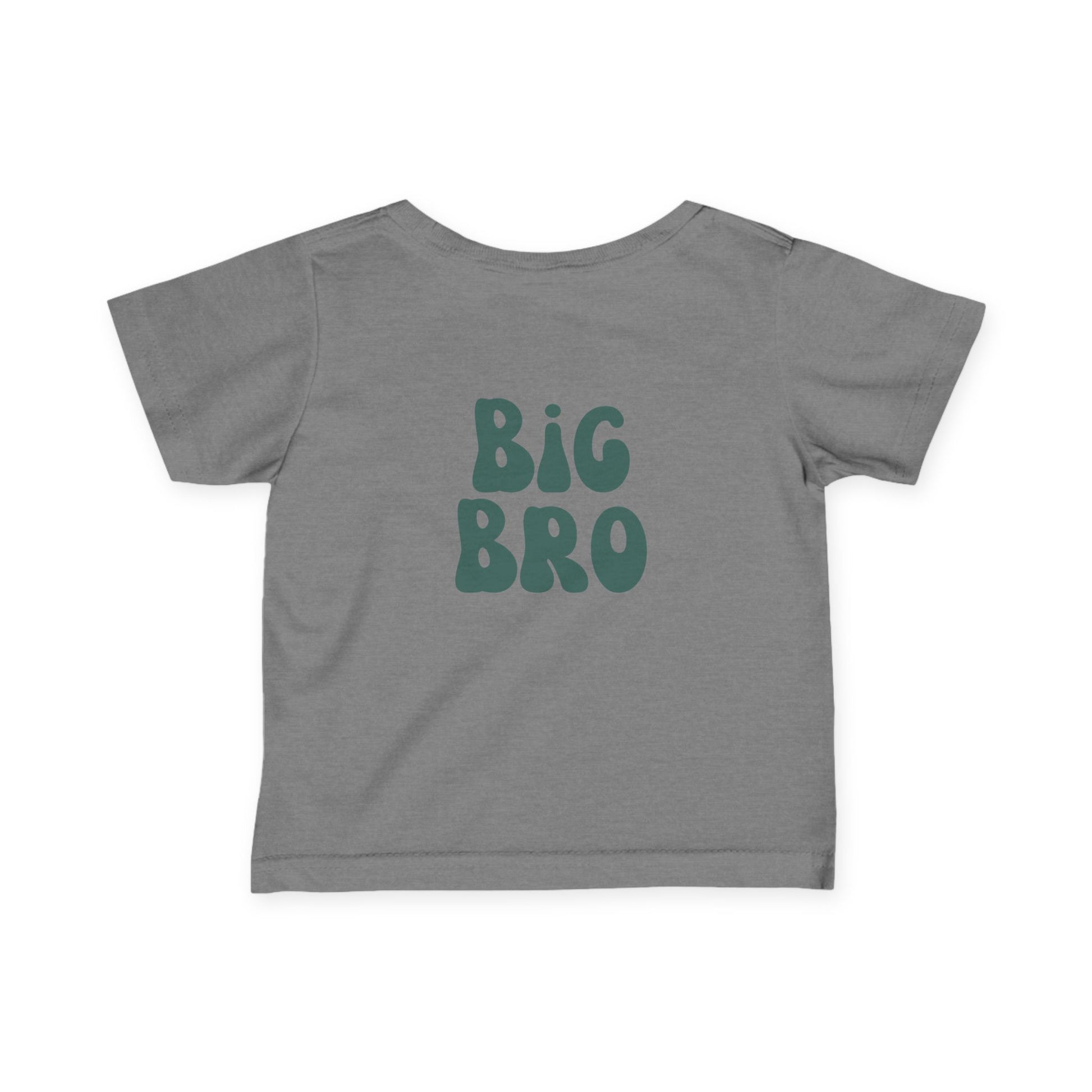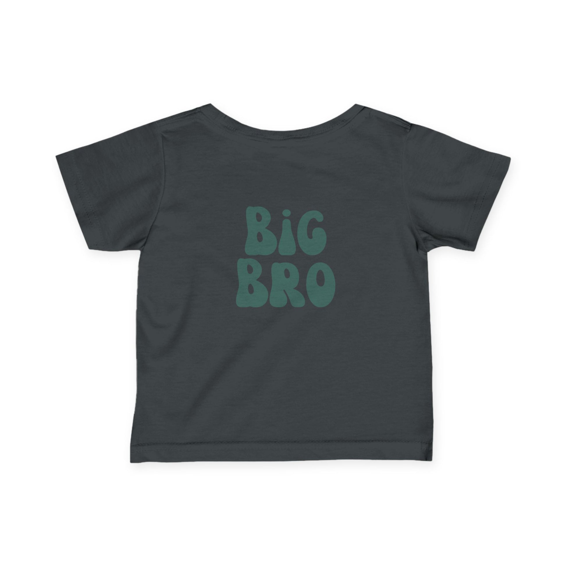 Our “Big Bro” smiley trucker hat t-shirt is the perfect match to our “Little Bro” tee — designed for family photos, sibling reveals, or just everyday fun. With a cool smiley face in a trucker hat on the front and “Big Bro” printed across the back, it’s an easy favorite for your little dude.