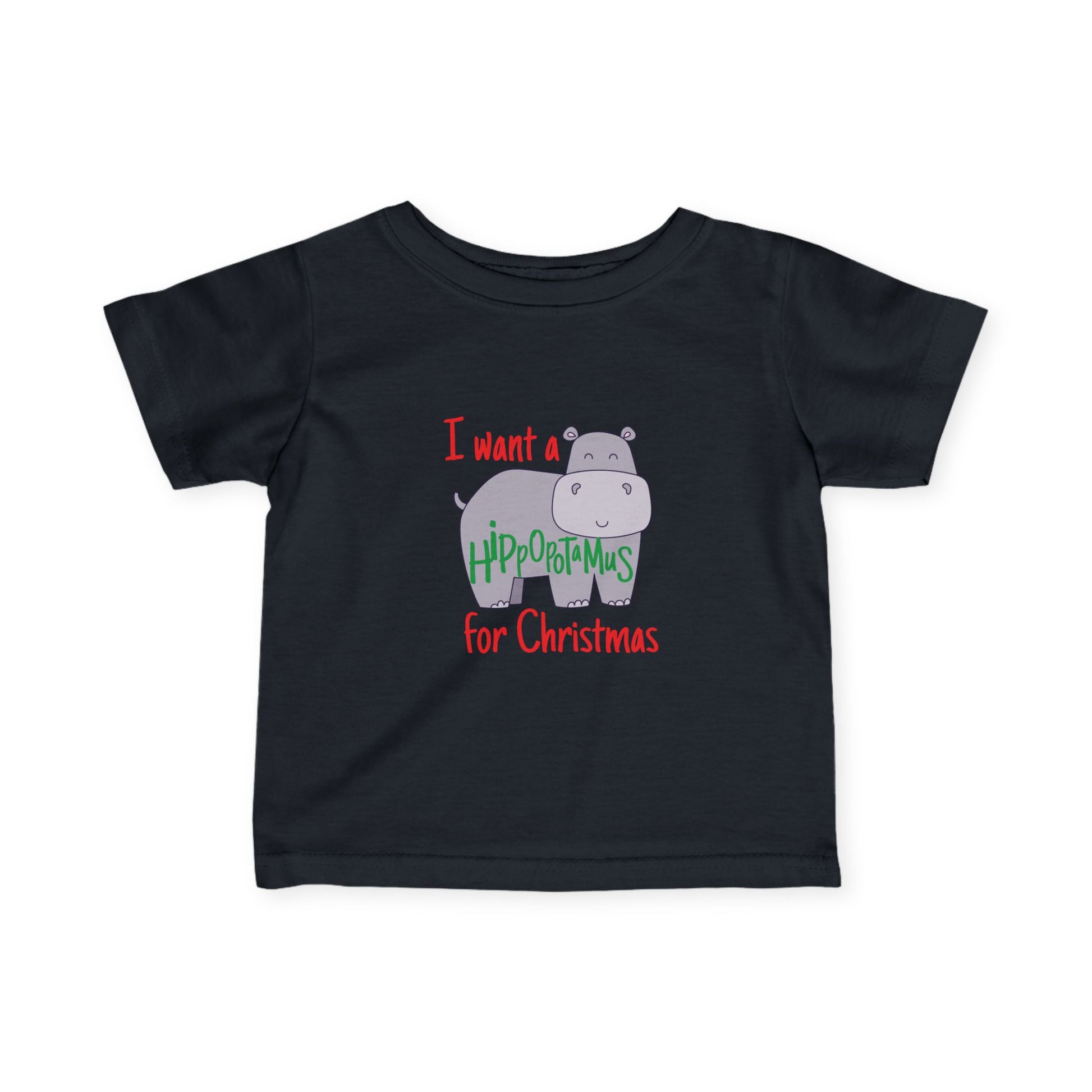 Dress your little one in holiday cheer with our “I Want a Hippopotamus for Christmas” baby boy t-shirt! Made from soft, high-quality cotton, this festive baby tee features a fun, playful design inspired by the classic Christmas song. It’s the perfect Christmas outfit for baby boys — comfy for everyday wear and cute enough for family photos or stocking stuffers.